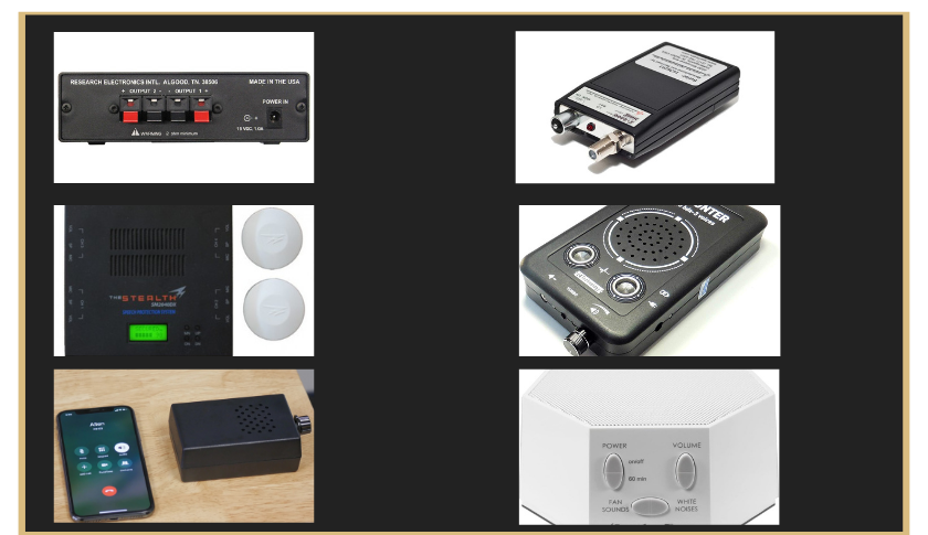 Akustik Parazit (Ultrasonik Bozucu): Bu cihazlar, insan kulağının duyamayacağı frekanslarda (ultrasonik) veya özel olarak tasarlanmış gürültü frekanslarında yayın yaparak, çevredeki tüm ses kayıt cihazlarının (cep telefonu, ses kayıt cihazı, dinleme böceği) mikrofonlarını bloke eder. Mikrofon, konuşulanı değil, sadece yoğun paraziti kaydeder.